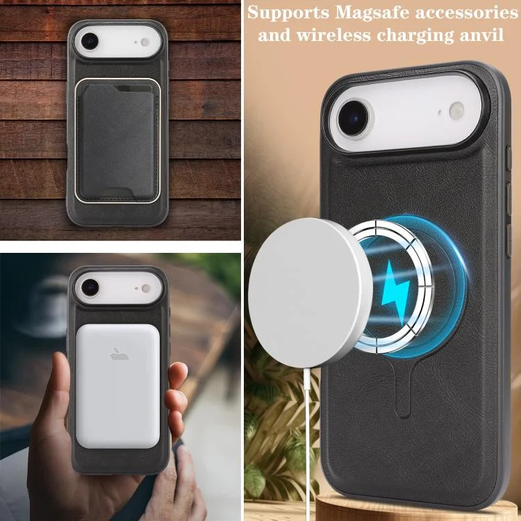 Kalebol Slim MagSafe Ring Magnetic Card Bag Leather Phone Case, For iPhone 17 Air
