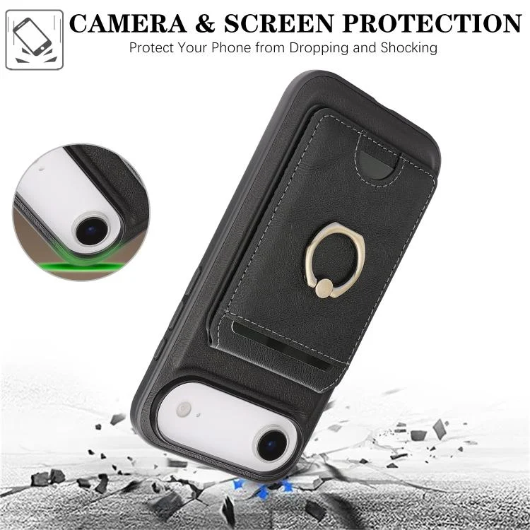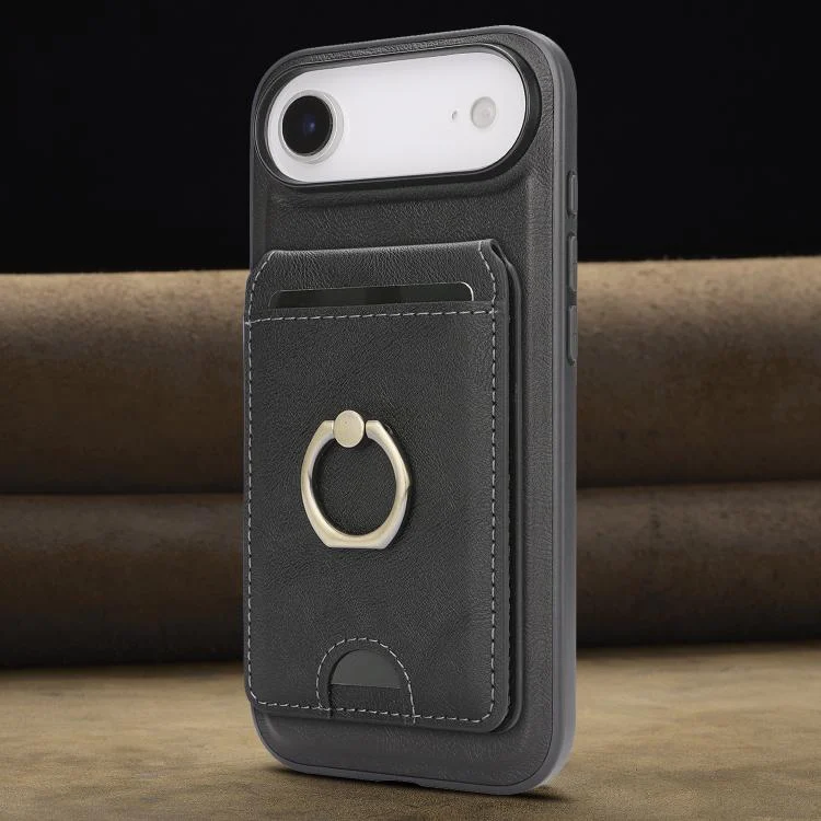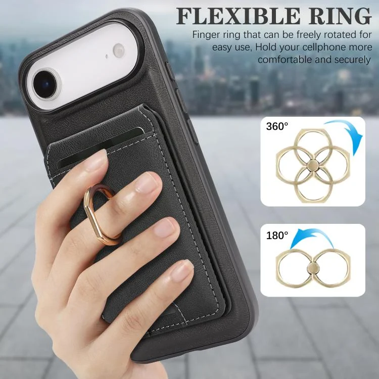 Kalebol Strong MagSafe Ring Magnetic Card Bag Holder Leather Phone Case, For iPhone 17 Air