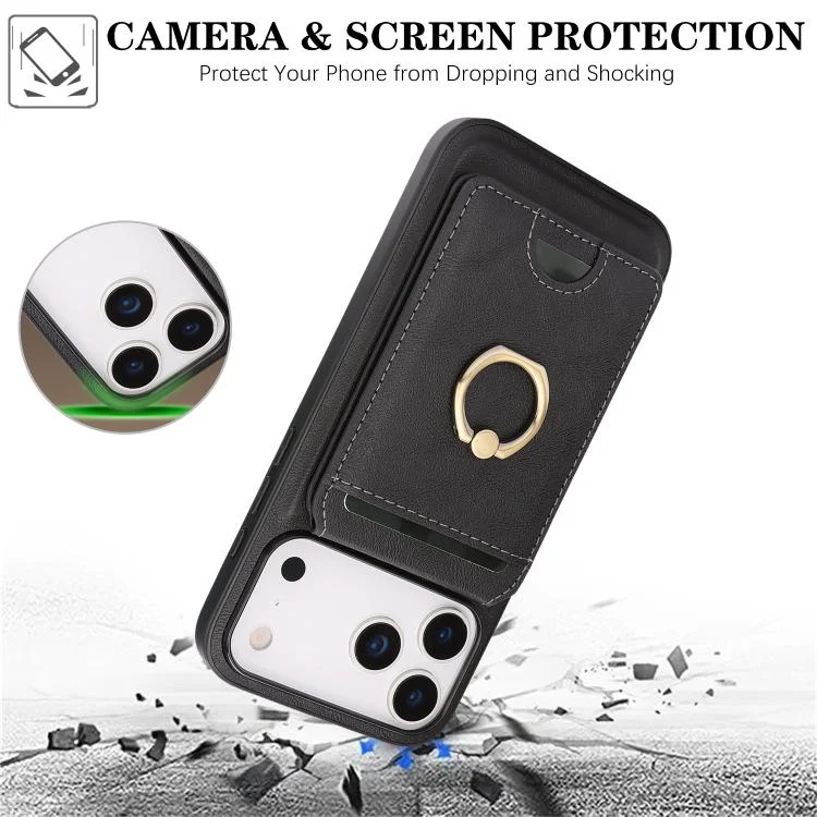 Kalebol Strong MagSafe Ring Magnetic Card Bag Holder Leather Phone Case, For iPhone 17 Pro Max, For iPhone 17 Pro, For iPhone 17