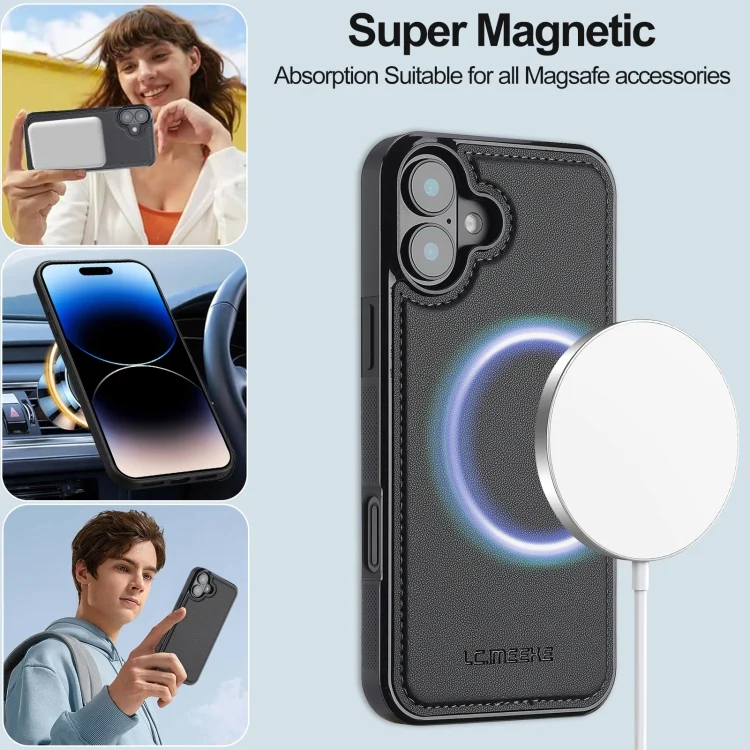 LC.IMEEKE L2 Series Detachable Magsafe PU Phone Case with Lanyard, For iPhone 16, For iPhone 14, For iPhone 14 Pro Max, For iPhone 7 / 8 / SE 2020 2022