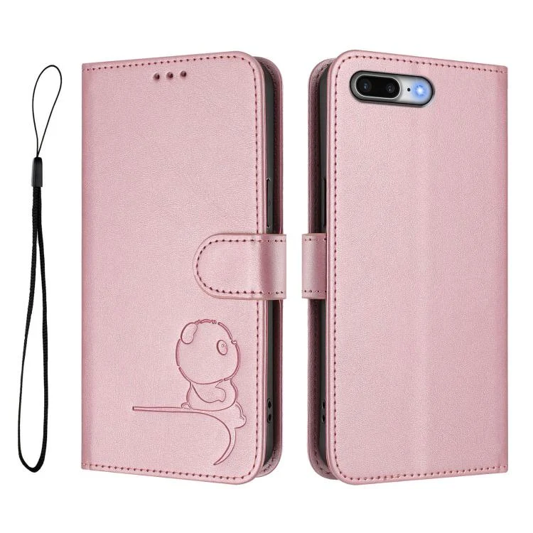 Litter Panda Embossing RFID Leather Phone Case with Lanyard, For iPhone 8 Plus / 7 Plus