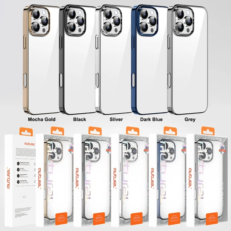 Mutural Jiantou Series Electroplating Hybrid PC Phone Case, For iPhone 16 Pro Max, For iPhone 16 Pro, For iPhone 16