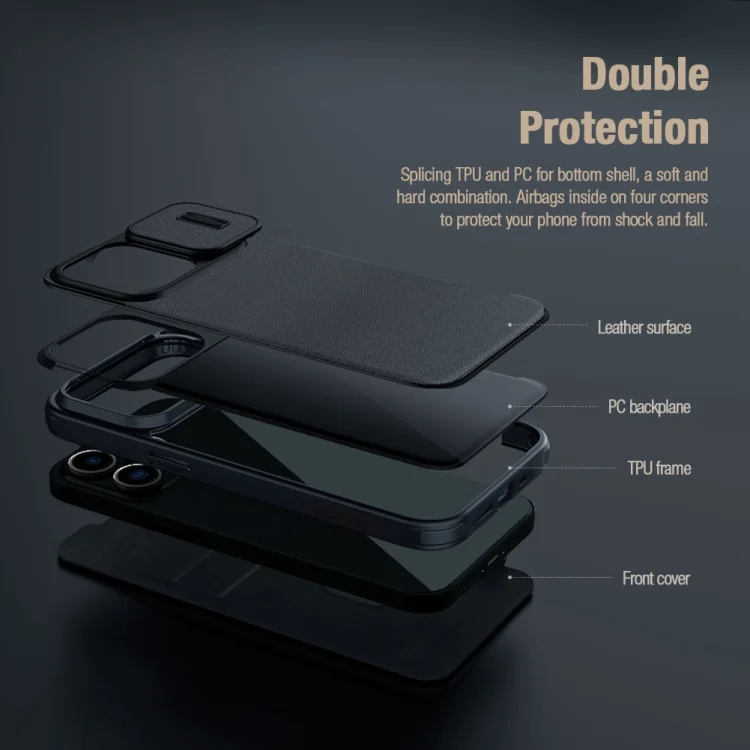 NILLKIN QIN Series Pro Plain Leather Phone Case, For iPhone 15 Pro Max, For iPhone 15 Pro, For iPhone 15 Plus, For iPhone 15