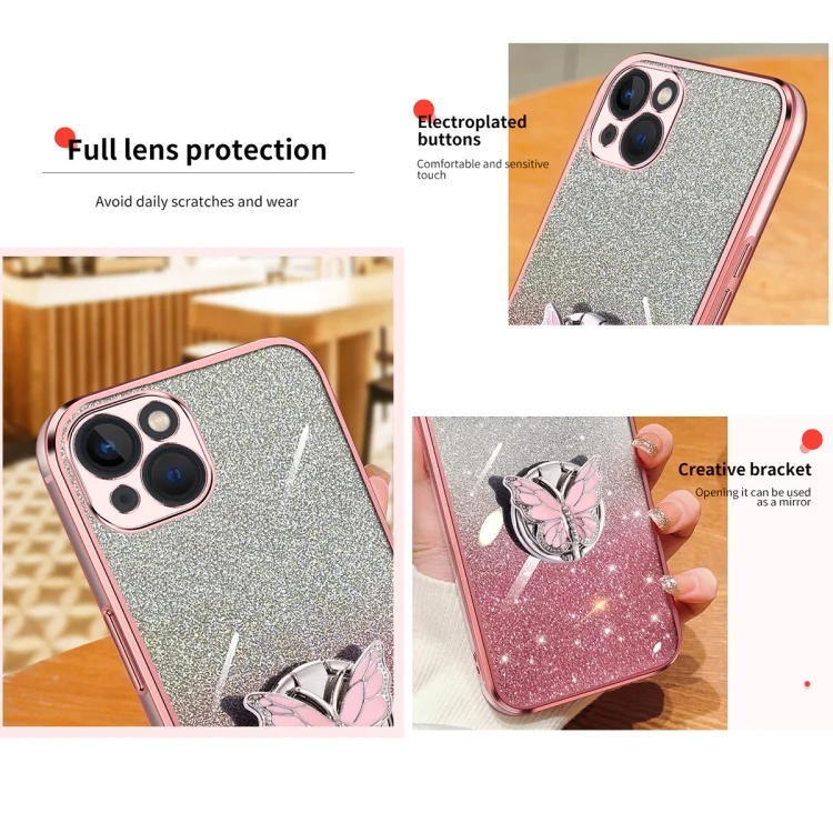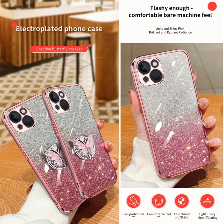 Plated Gradient Glitter Butterfly Holder TPU Phone Case, For iPhone 14 Plus, For iPhone 14, For iPhone 14 Pro, For iPhone 14 Pro Max