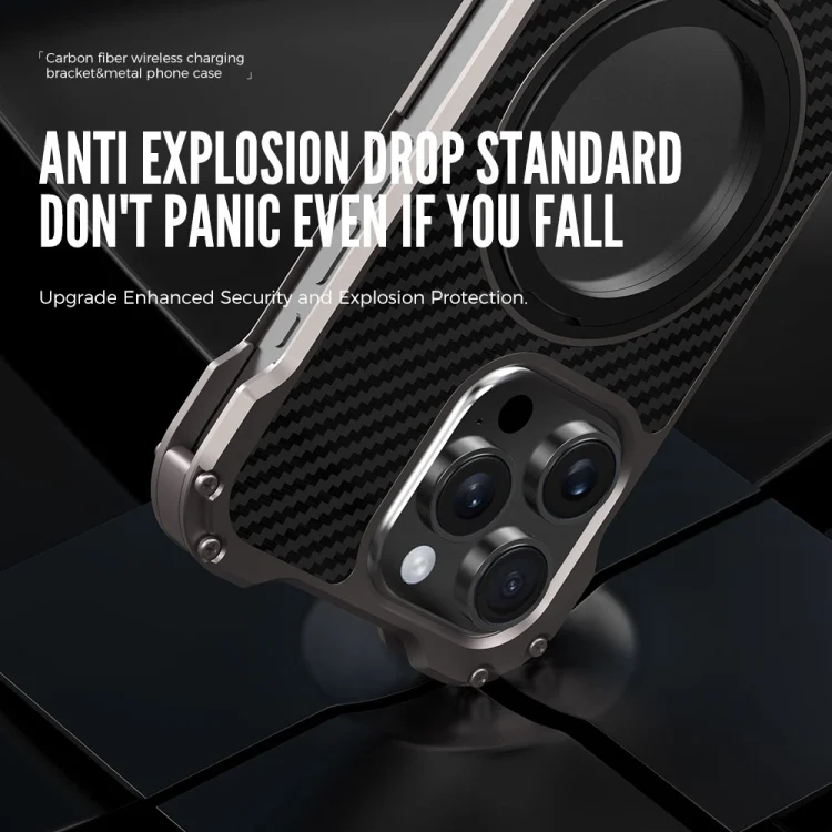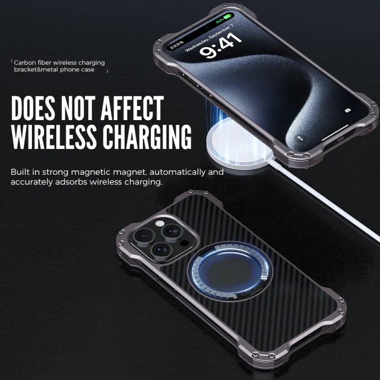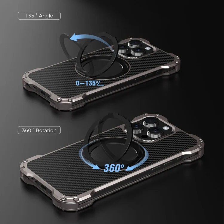 R-JUST RJ51-1 Hollow Rotating Holder MagSafe Magnetic Metal Phone Case, For iPhone 16 Pro Max, For iPhone 16 Pro, For iPhone 16 Plus, For iPhone 16, For iPhone 15 Pro Max, For iPhone 15 Pro…