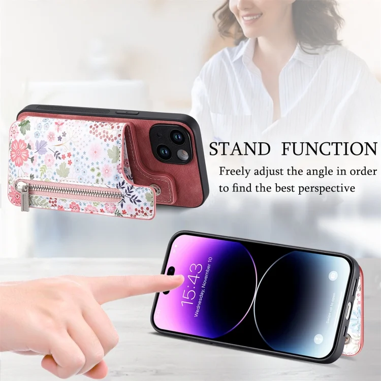 Retro Painted Zipper Wallet Back Phone Case, For iPhone 14 Pro, For iPhone 14 Pro Max