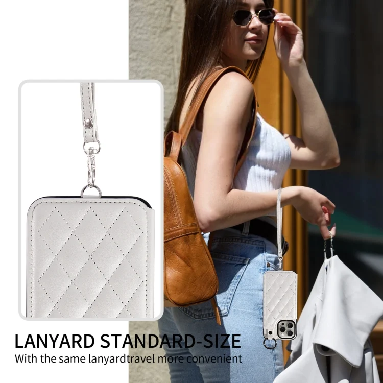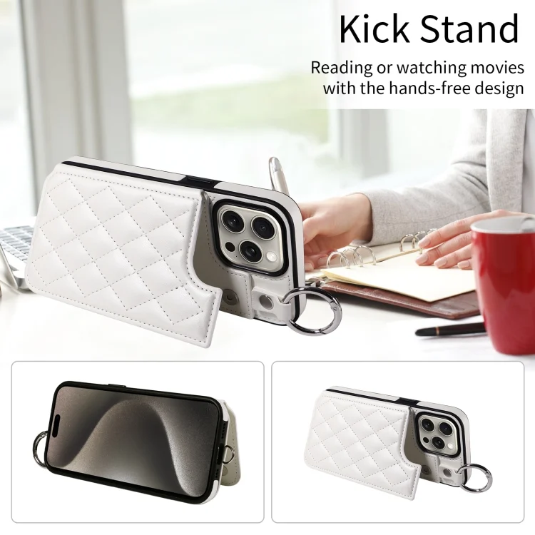 Rhombic Texture Card Bag Phone Case with Short Lanyard, For iPhone 15 Pro Max, For iPhone 15 Pro