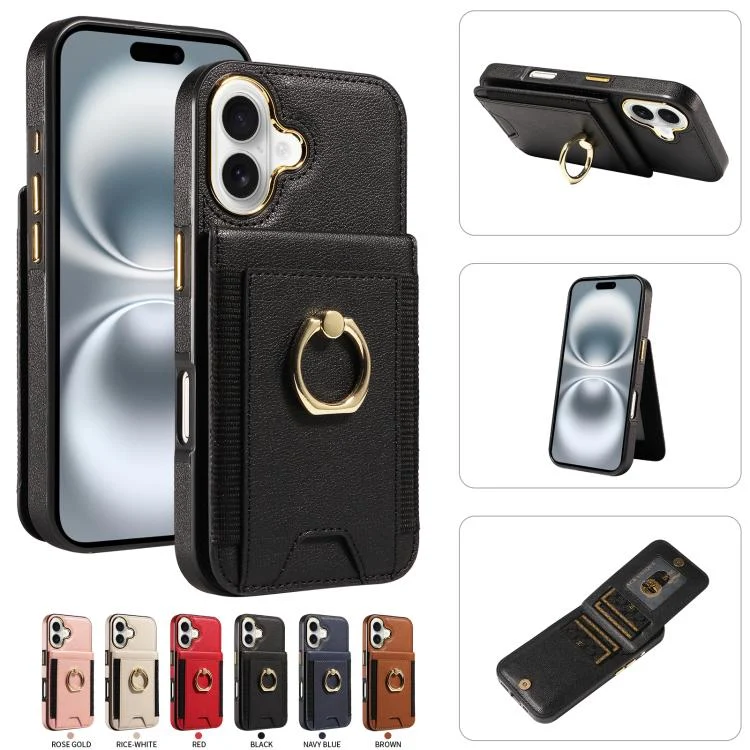 Ring Multifunctional Vertical Flip Wallet Back Cover Leather Phone Case, For iPhone 16, For iPhone 15 Pro Max, For iPhone 15 Pro