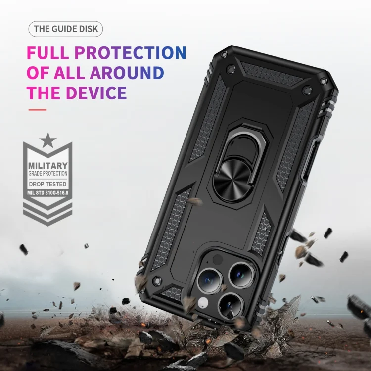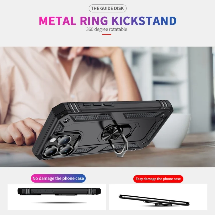 Shockproof TPU Hybrid PC Phone Case with Holder, For iPhone 16 Pro Max, For iPhone 16 Pro