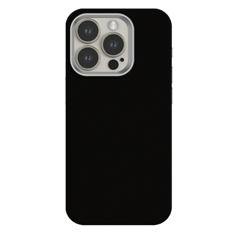 Skin Feel Fine Leather Texture Metal Lens Frame MagSafe Phone Case, For iPhone 15 Pro Max