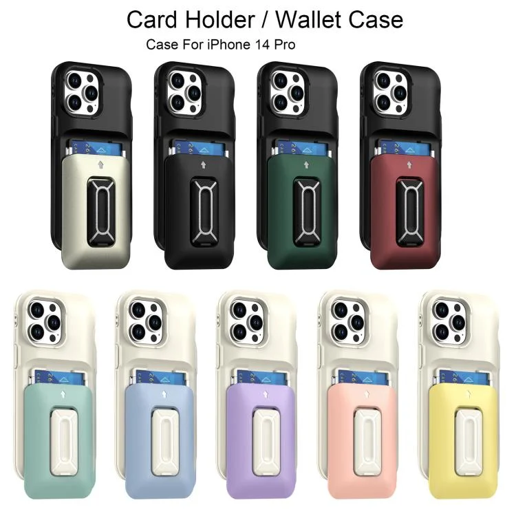 Sliding Card Holder Integrated Phone Case with Kickstand, For iPhone 14 Pro, For iPhone 14 Pro Max