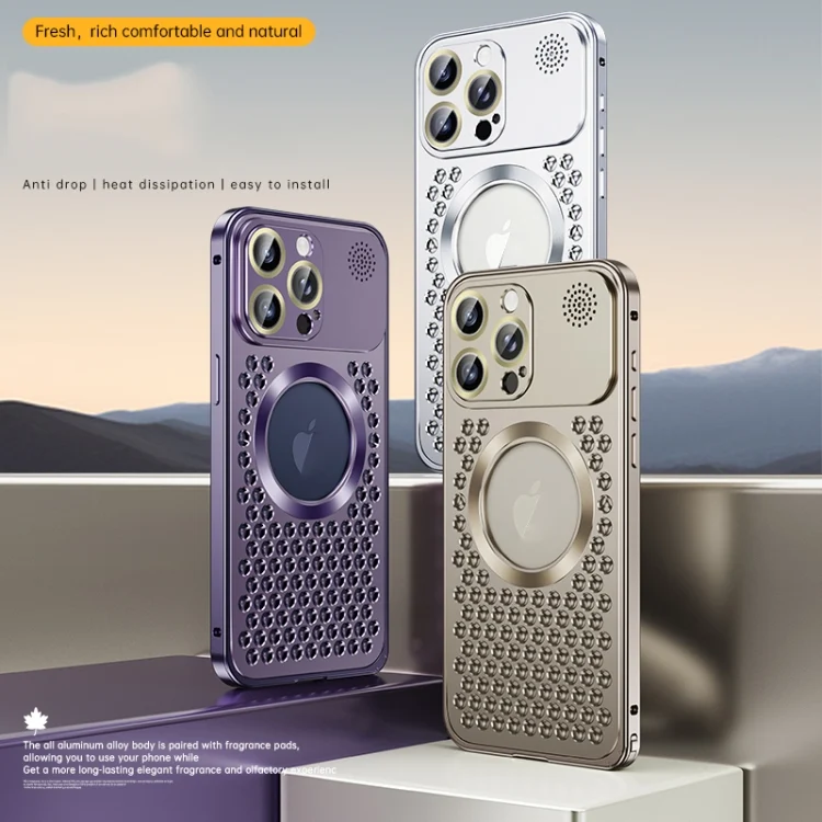 Spring Buckle MagSafe Magnetic Metal Aromatherapy Phone Case, For iPhone 16 Pro Max, For iPhone 16 Pro, For iPhone 16