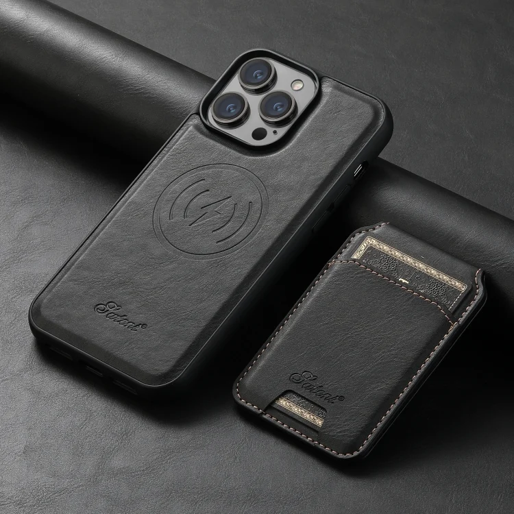 Suteni H15 MagSafe Oil Eax Leather Detachable Wallet Back Phone Case, For iPhone 12, For iPhone 12 Pro Max, For iPhone 12 Pro