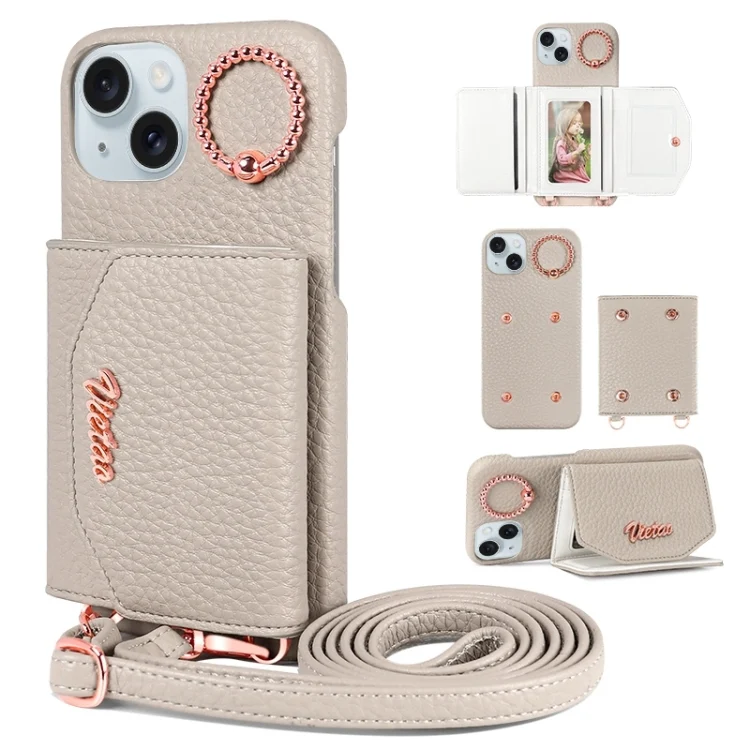 VIETAO Ring Holder Card Bag Phone Case with Lanyard, For iPhone 15, For iPhone 14, For iPhone 14 Pro