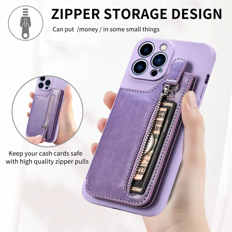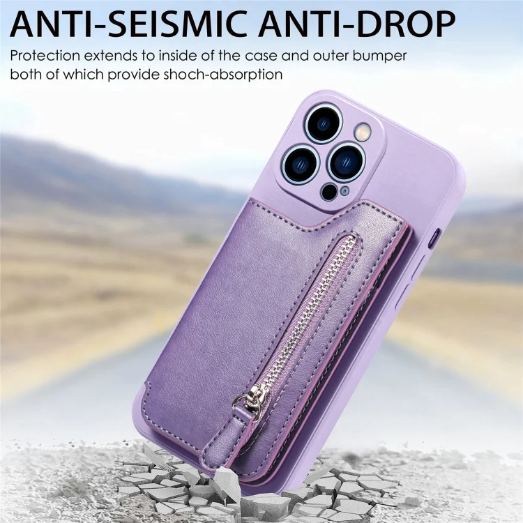 Zipper Wallet Leather Back Shockproof Phone Case, For iPhone 14 Plus, For iPhone 14, For iPhone 14 Pro, For iPhone 14 Pro Max