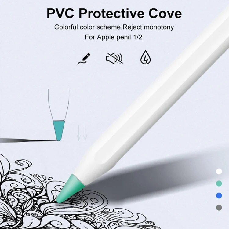 4 PCS Non-slip Mute Wear-resistant Nib Cover for Apple Pencil 1 / 2, Dark Blue, Mint Green, Transparent, White