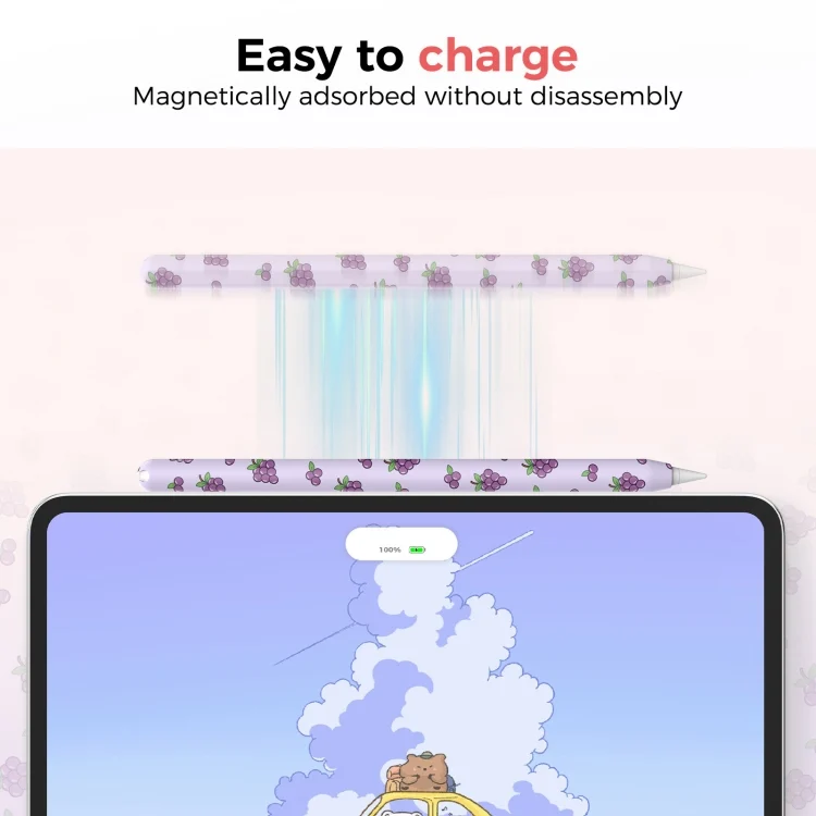 For Apple Pencil Pro / 2 AhaStyle PT65FT Silicone Pen Case, Grape, Avocado, Peach, Banana