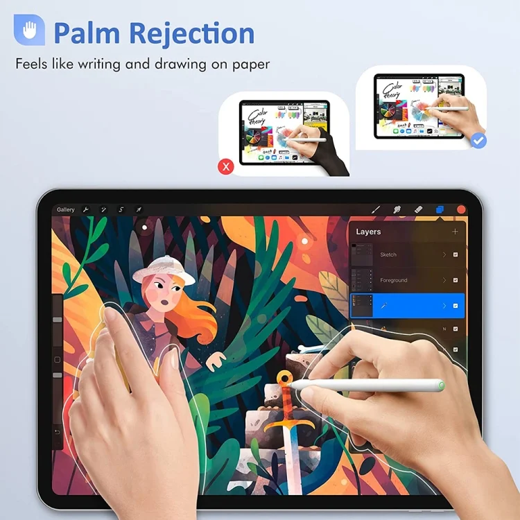 1. Palm rejection: It allows you to rest your hand on the screen while using this stylus pen without any interference.