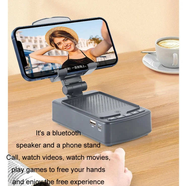 12. It is a bluetooth speaker and a mobile phone stand, free your hands for calling, watching videos, watching movies, playing games, and enjoy the free experience quietly