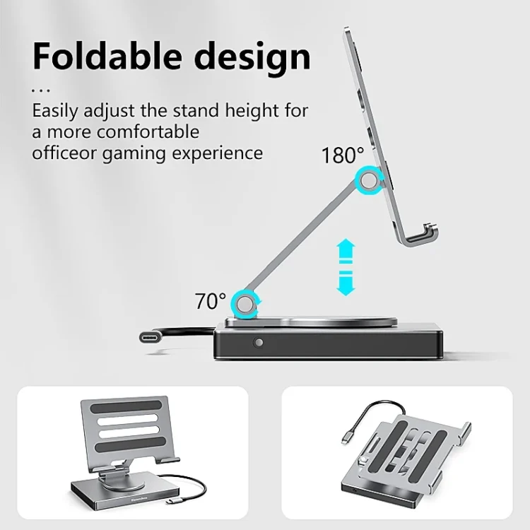 Blueendless 4K/60Hz Multifunctional Folding Tablet Type-C Docking Station Bracket, 8-in-1, 8-in-1 Rotating, 9-in-1, 9-in-1 Rotating