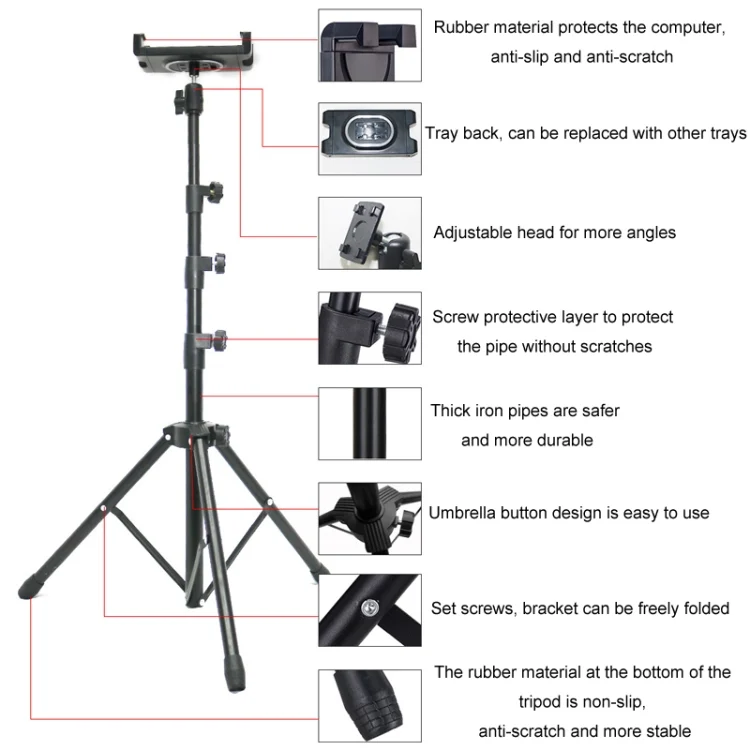 1.6m Adjustable Tablet Stand Floor-Standing Retractable Mobile Phone Tripod, 323, 306, 307, 311, 312, 313, 316, 303