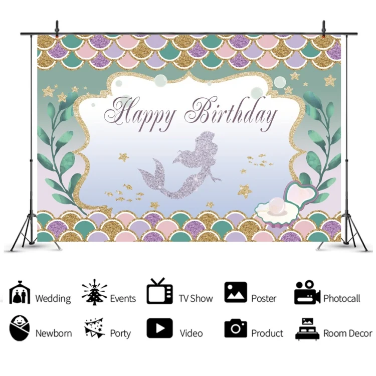 120 x 80cm Mermaid Happy Birthday Photography Background Cloth