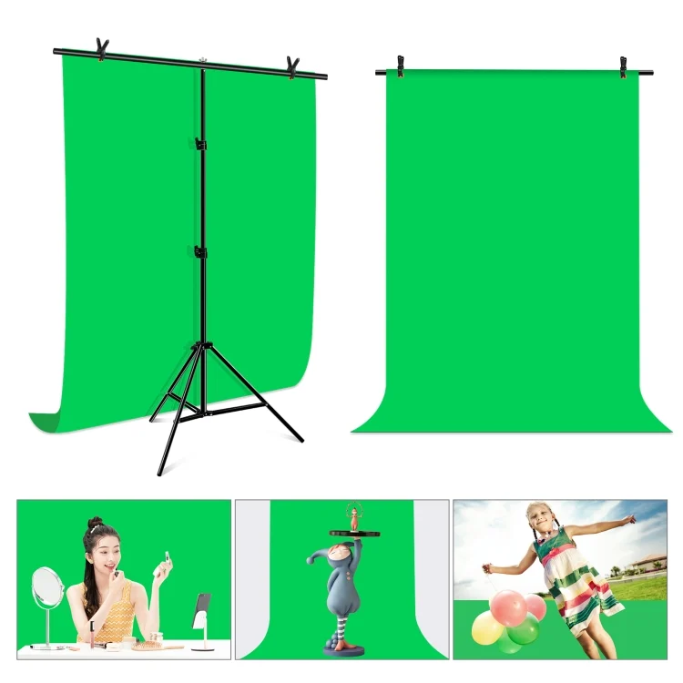 PULUZ 2x2m T-Shape Photo Studio Background Support Stand Backdrop Crossbar Bracket Kit with Clips