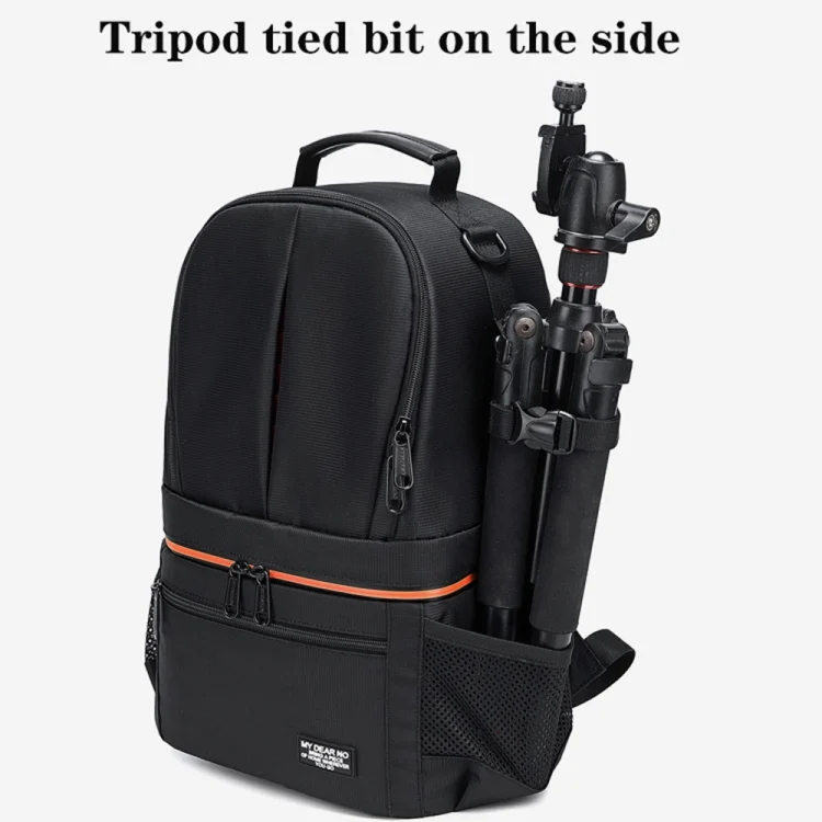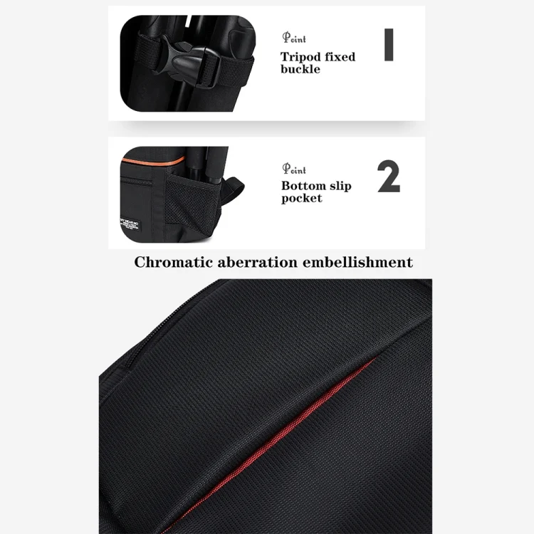 4. Bottom Tripod Straps: Tripod or monopod can be attached to the bottom with straps which does not alter the center of gravity because the weight of both the tripod and the backpack are uniformly distributed, which aids comfort when carrying.