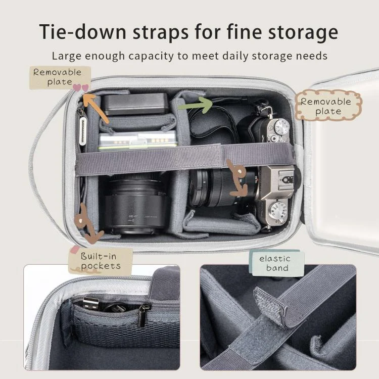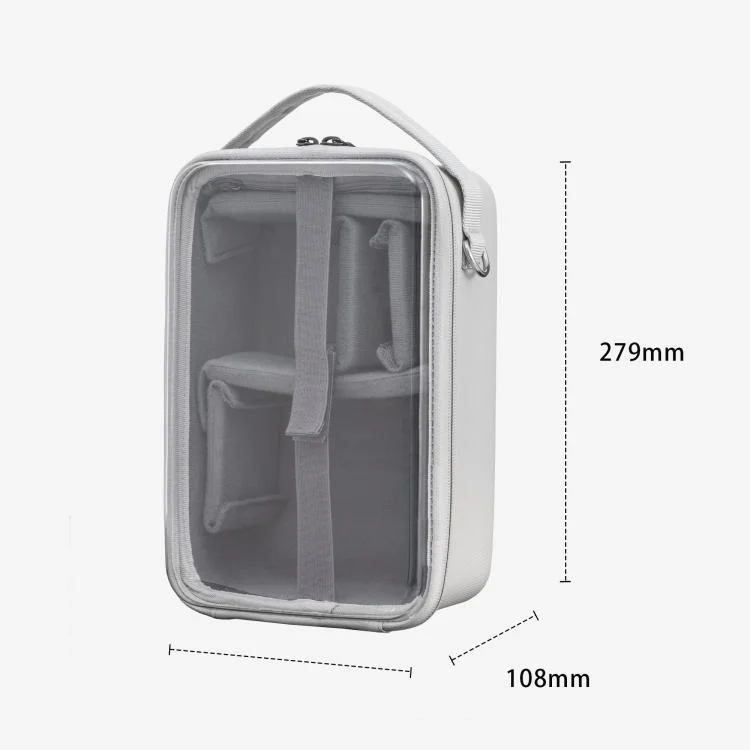 Suggestion: The partitions of the storage bag can be assembled at will, and can be freely combined according to the size of micro single camera, Pocket3, Action series camera, gopro camera, and shadow stone camera. It can also be displayed in combination with camera + daily necessities; the visual design tends to be fashionable, and you can also clearly see what items you brought, which is convenient for inspection when going out, and to a certain extent, subway security inspection is also more convenient. These can be used as selling points to display