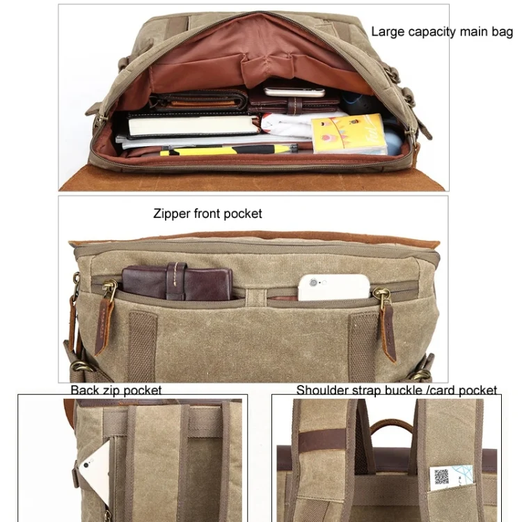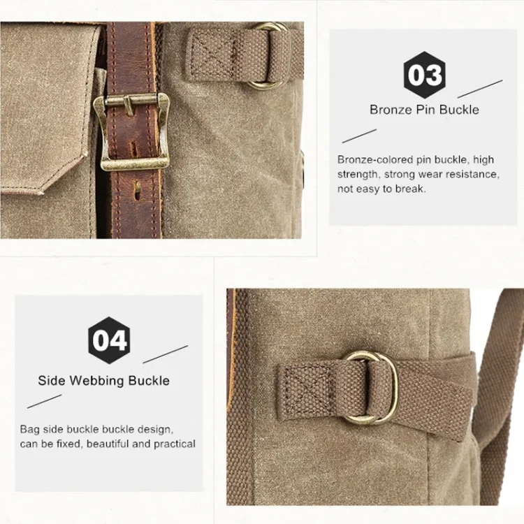 1. Canvas fabric, tough and wear-resistant, crazy horse leather + bronze hardware, further embellishes the retro style.