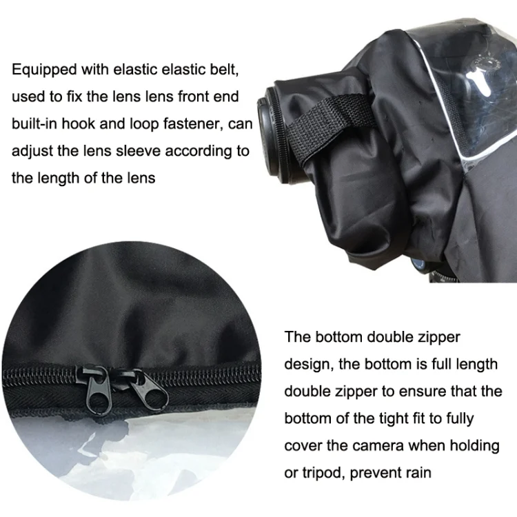 2. Half of the hood is outside, and the lens can be completely protected. For short lenses, the raincoat can be folded for use)