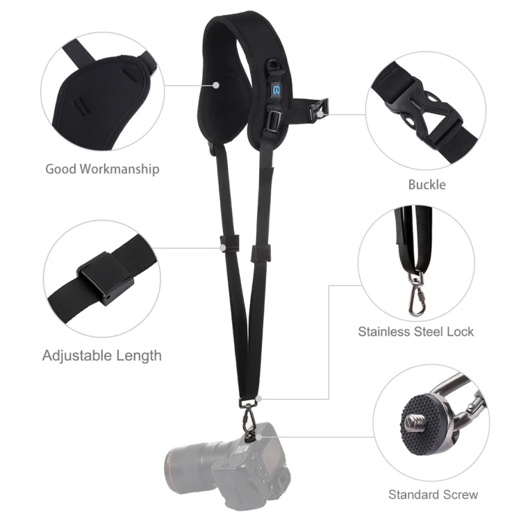 1. Ergonomic shoulder pad is specially designed to distribute the camera weight evenly across the shoulder and prevent the painful feeling after hauling the heavy camera around for a whole day.