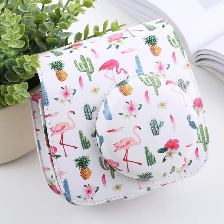 Cactus Flamingo Pattern Full Body Camera PU Leather Case Bag with Strap for FUJIFILM instax mini 9 / mini 8+ / mini 8