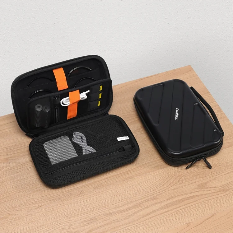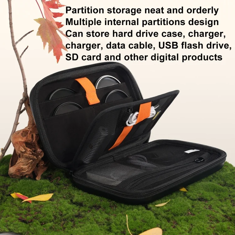 1. Internal multiple partition design, neat and orderly storage, can store hard drive boxes, chargers, chargers, data cables, U disk, SD card and other digital products