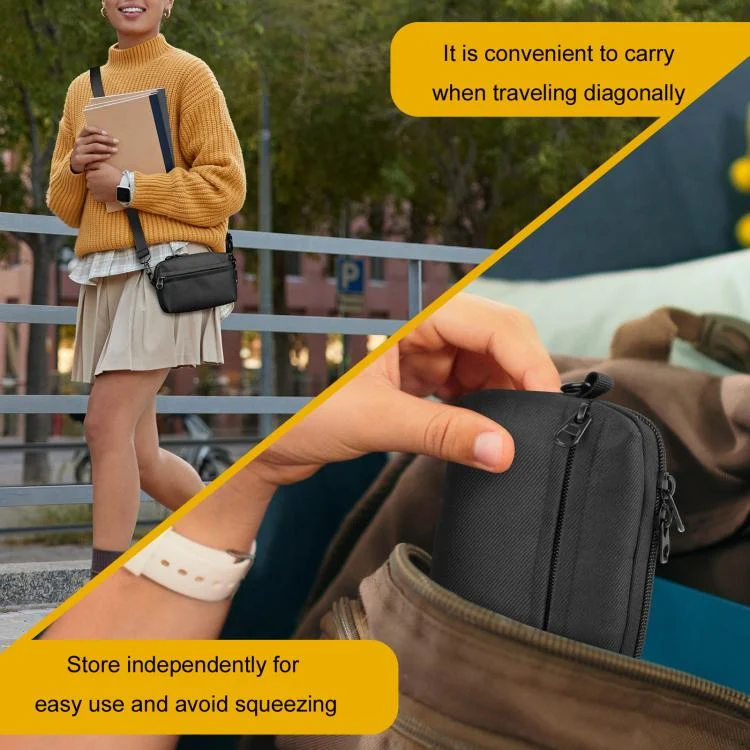6. Double zipper for easy access, double pocket design, front pocket can store charging cables, memory cards and other small items