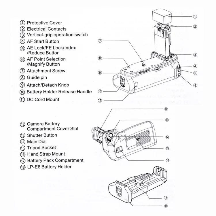 PULUZ Vertical Camera Battery Grip for Canon EOS 6D Mark II