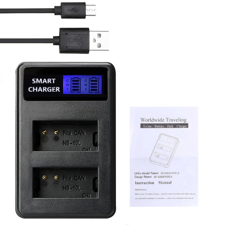 For Canon NB-10L Battery Smart LCD Display USB Dual-Channel Charger