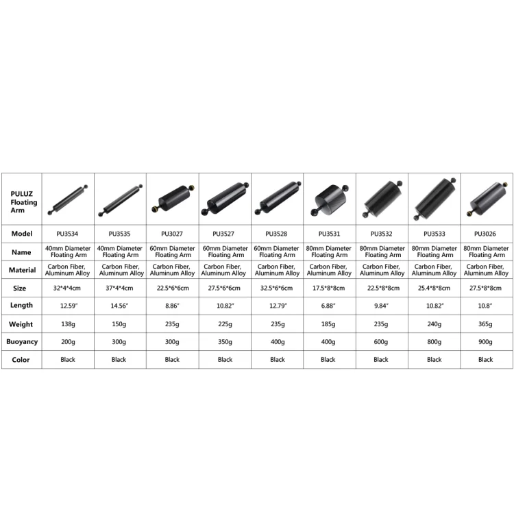 PULUZ 10.82 inch 27.5cm Length 80mm Diameter Dual Balls Carbon Fiber Floating Arm, Ball Diameter: 25mm, Buoyancy: 800g
