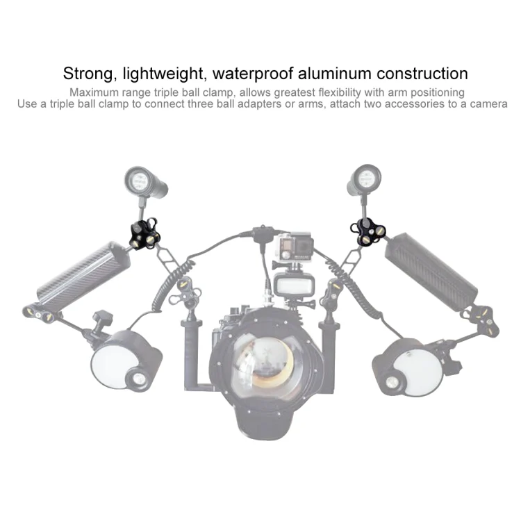 PULUZ Triple Ball Clamp Diving Camera Bracket Aluminum Spring Flashlight Clamp for Diving Underwater Photography System