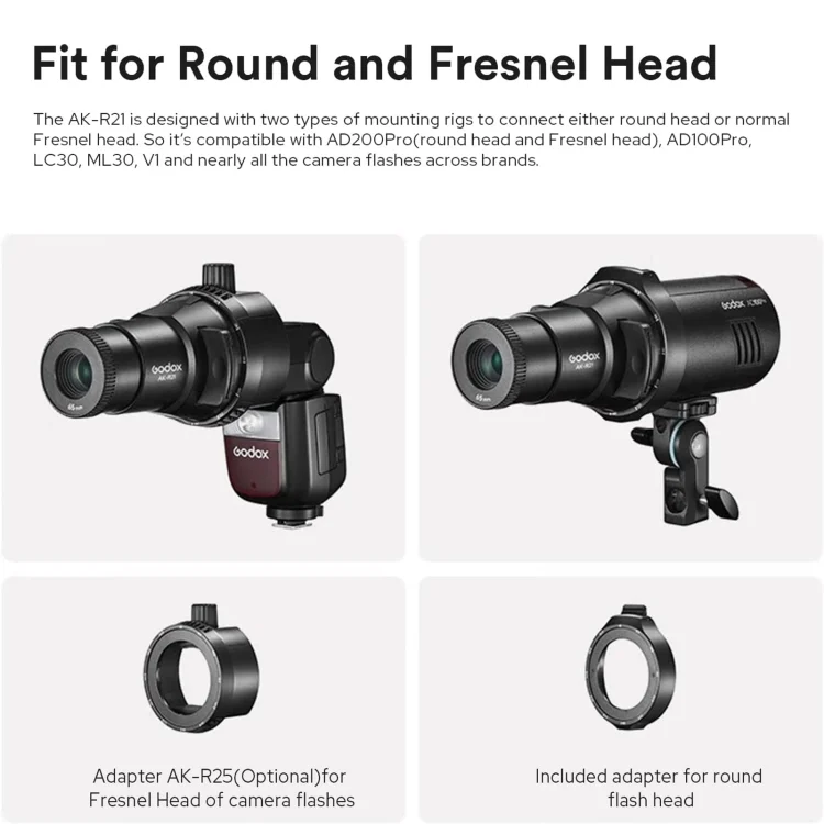 4. Fresnel Head Adapter Holder AK-R25 for Godox AK-R21 camera flash projector.
