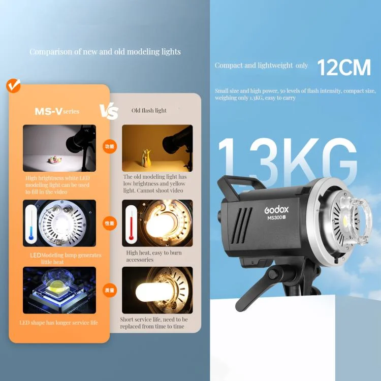 Godox MS300-V Studio Flash Light 300Ws Bowens Mount Strobe Light with Lamp Cover