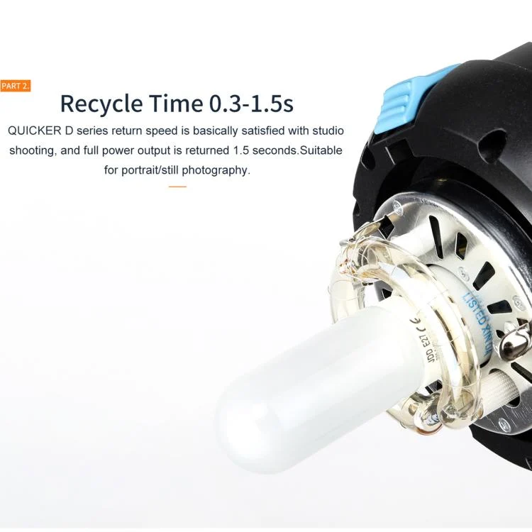 1. Godox QS series are available in several power versions from 300Ws to 1200Ws, they are characterized by a range of flash energy regulation in the range of 5 degrees of aperture (1/1 – 1/32, with an accuracy of 0.1 EV). Recycle time to full flash energy in less than 1.5 seconds. At minimal power, it achieves a very short flash duration, only 1/2000s (t = 0.1), which allows free shooting during the session. The flash color temperature is 5600K and may change within ??± 200K depending on the flash energy set.