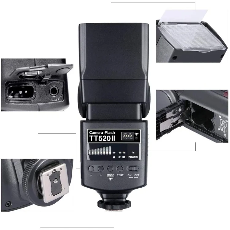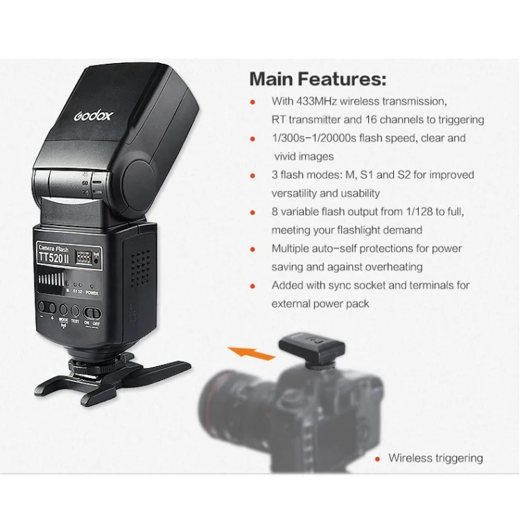 Godox TT520II 433MHZ Wireless 1/300s-1/2000s HSS Flash Speedlite Camera Top Fill Light for Canon / Nikon DSLR Cameras