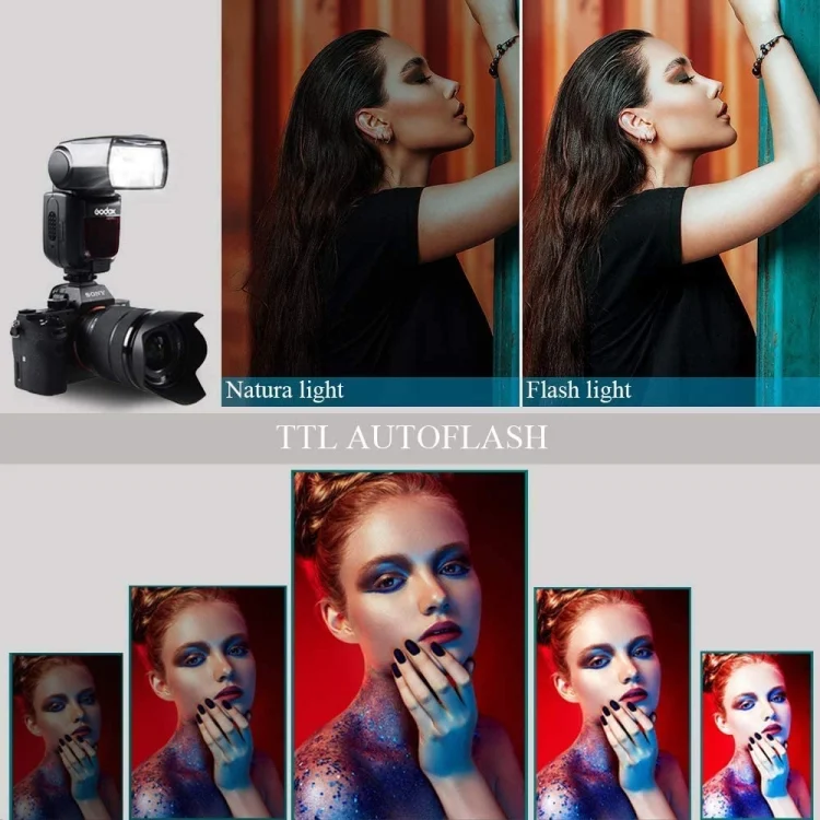 6. High speed synchronization (HSS): when used with GODOX cell II trigger or x1c / x1n TTL wireless trigger (sold separately), high speed synchronization can be achieved, and the speed can reach 1 / 8000s (depending on the camera). This is especially convenient when aperture priority is used to fill the flash on the portrait.