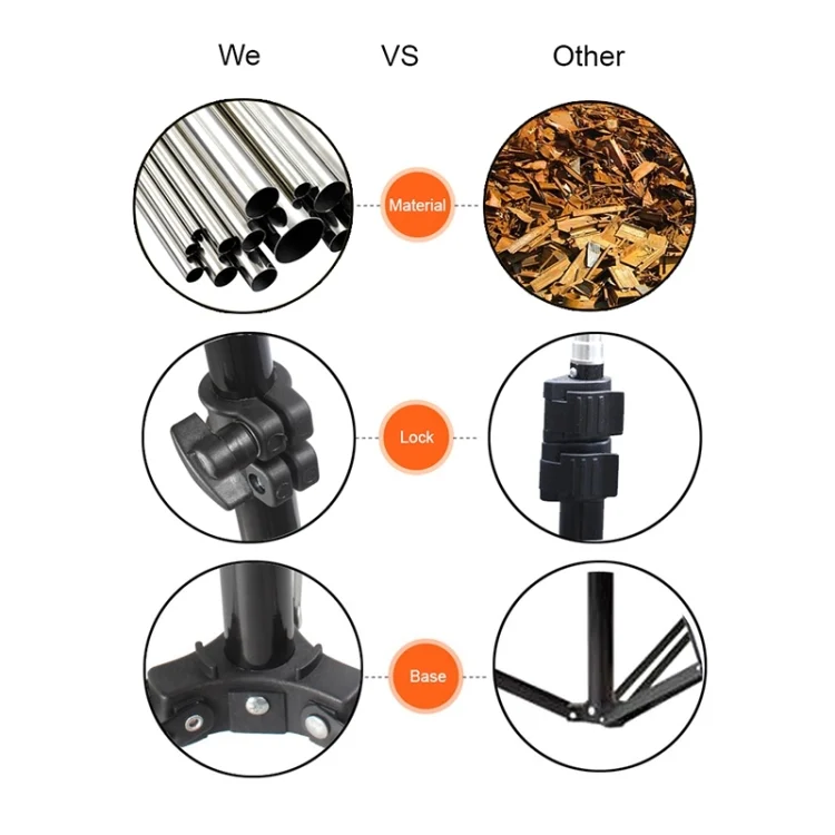 3. Made by the industrial standard, it supports all major brands of photo equipment such as reflector, softbox, different lights, umbrella, background, etc.