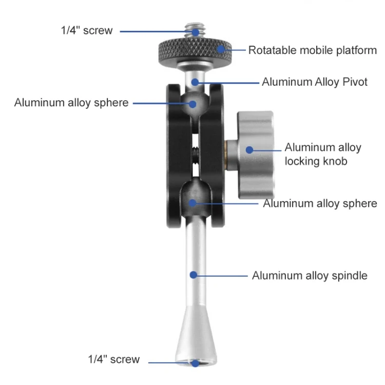 4. The double-headed 1/4 inch screw is fixed, with a locking knob ensures secure and quick operation.