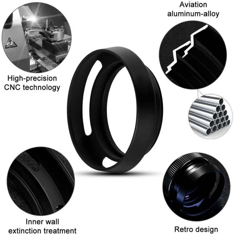 1) These lens hood made of metal and with Hollow-out design, nice and practical