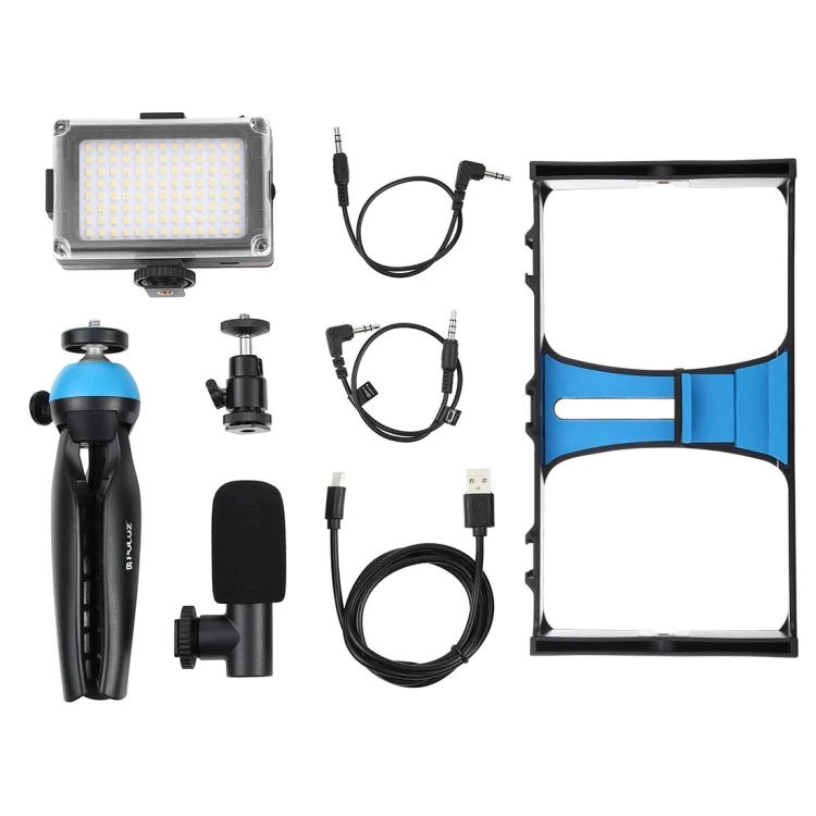 PULUZ 3 in 1 Vlogging Live Broadcast LED Selfie Light Smartphone Video Rig Kits with Microphone + Cold Shoe Tripod Head for iPhone, Galaxy, Huawei, Xiaomi, HTC, LG, Google, and Other Smartphones