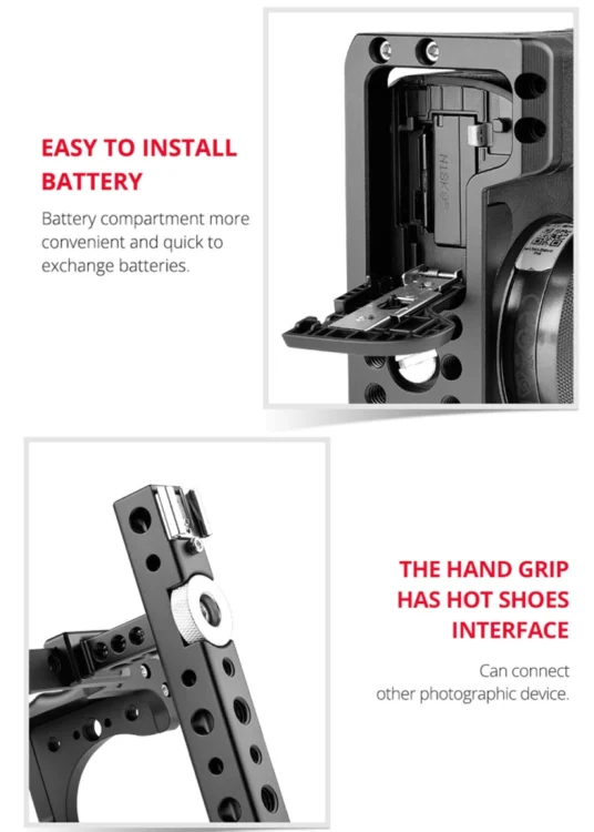 6. There are parts connected to the handle on the side of the cage , and the handle can be mounted on the side of the cage to realize handheld shooting.