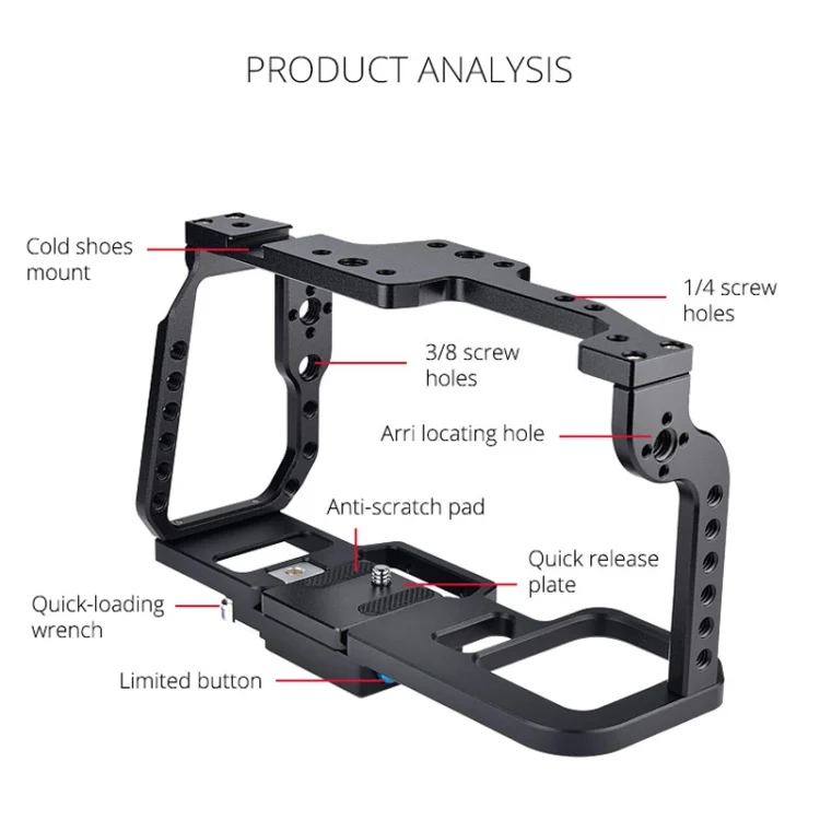 3. There are many 1/4 and 3/8 threaded holes around the cage, cold shoes, etc., external holes of different specifications to assist external monitors, microphones, lights and other accessories.